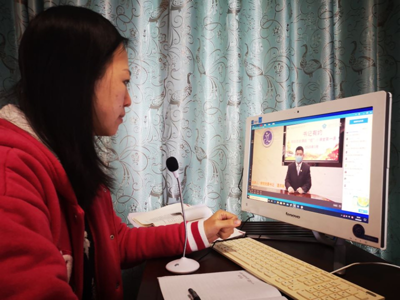 思政部王灿老师直播课堂为学生播放“书记有约”战疫视频