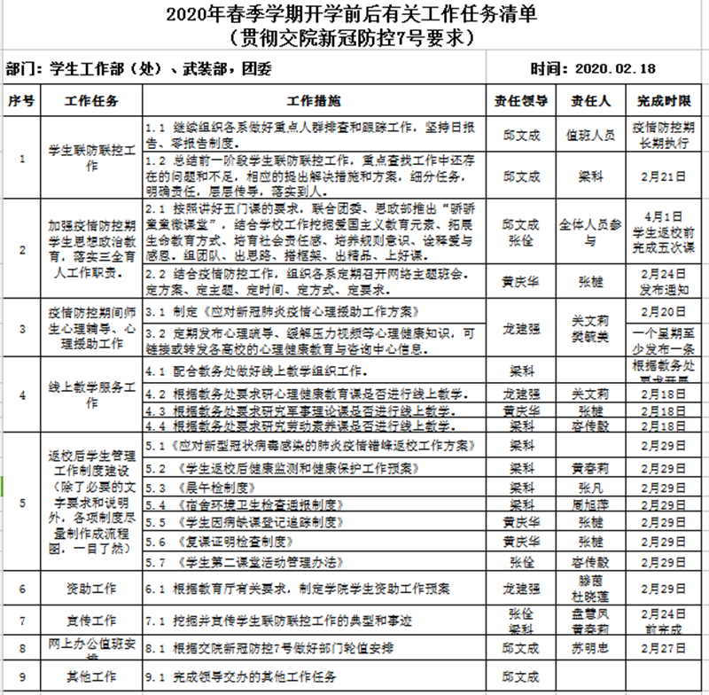 (学生工作部(处)讯 黄春莉、牛钦文 )当前是新冠肺炎疫情防控工作最关键的时期,校园疫情防控战线上的学工队伍在学院疫情防控工作领导小组领导下,践行初心、担当使命,以“硬核”姿态抗战疫情,成为这场特殊考试里的优秀答卷人。