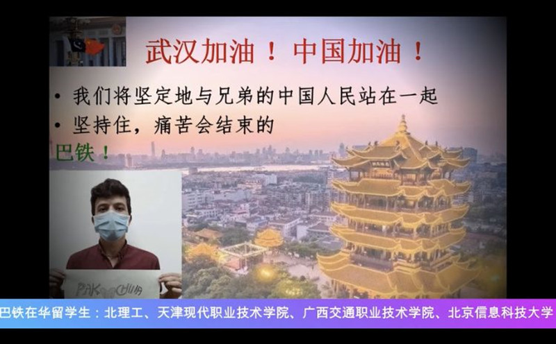 学院巴基斯坦留学生及其作品登上了“外交之声”的“巴铁祝福中国、加油武汉”视频