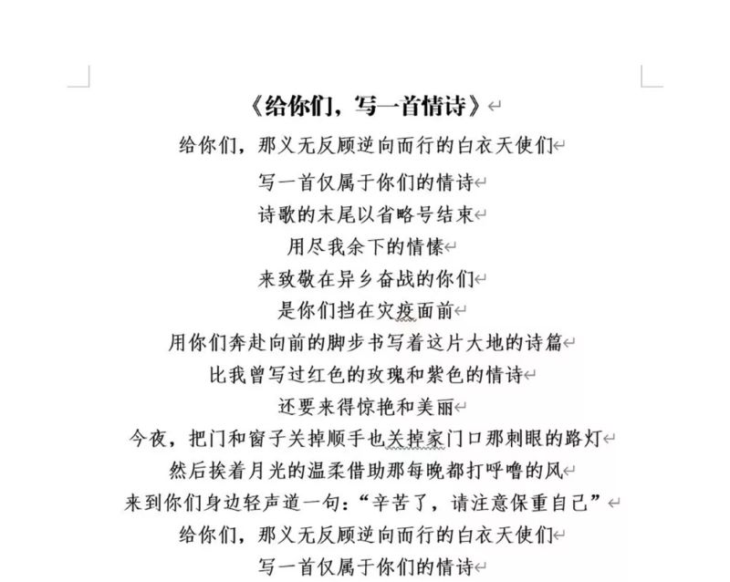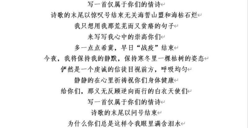 “写一首仅属于你们的情诗,诗歌的末尾以省略号结束,用尽我余下的情愫,来致敬正在异乡奋战的你们。”学生二支部郑文诗老师心系疫情,写诗歌传递交院能量,为武汉加油,为中国加油,用情感真挚、令人动容的《给你们,写一首情诗》,赞颂奋战在抗疫第一线的白衣天使。