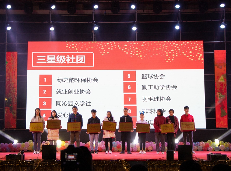 晚会开始前,现场播放了2019年各社团精彩活动及兄弟院校的祝福视频。整场晚会共15个节目,内容异彩纷呈、精彩不断。龙狮协会惊艳四射的表演拉开了晚会的序幕;院礼仪队的《风采礼仪》给大家带来了一场视觉盛宴;啦啦操协会带来的《舞动青春》彻底点燃晚会现场;院艺术团的《礼仪之邦》展现了意蕴悠长的中国风采;义务消防队的《擒敌拳》让全场观众热血沸腾;青年志愿者协会和6s汽车技术服务社的《你笑起来真好看》传达出了志愿者一种乐观积极的态度。本次晚会聚歌曲、舞蹈、走秀、武术于一体,从不同角度充分展现了我院学生敢于有梦、勇于追梦、勤于圆梦的风采。我院留学生作为神秘团队,也为大家带来了一个风格特色鲜明的《歌舞串烧》表演,中外青年共同度过了一个充满温暖与爱的冬夜。晚会期间,现场颁发了2018-2019学年星级社团牌匾。