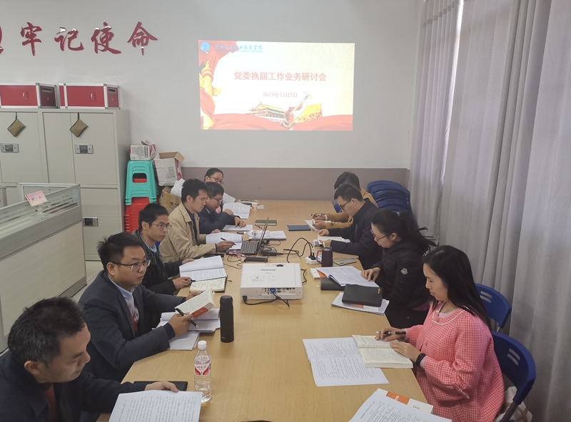 (党工部 讯 陆丽程)12月5日下午,我院在昆仑校区管理楼403办公室召开党委换届工作业务研讨会。党委工作部全体成员,各系部组织员参加会议。会议由党委工作部部长林松主持。