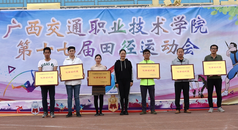 (党工部 讯 陆丽程/文 朱青穗、陆丽程/图)11月23日下午,学院隆重举行第十七届田径运动会闭幕式。学院党委书记温宗胤,党委副书记、纪委书记莫海燕,副院长韦红教参加了闭幕式。