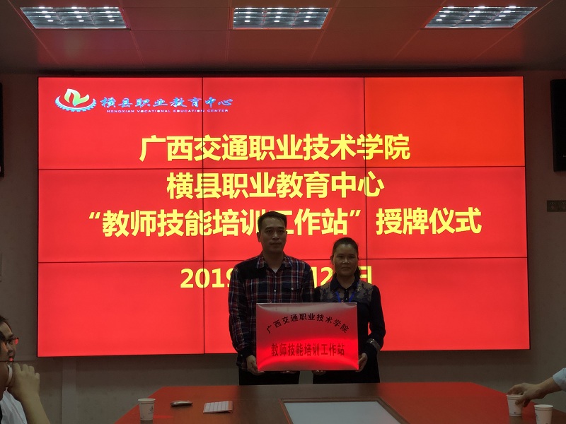 (交通信息工程系 讯 孙 坚、梁红艳/文 孙坚/图) 近日,我院赴横县职业教育中心开展对口帮扶支援活动。本次活动涵盖了职教专家进校园讲座、教学点授课、专业技术培训、广西交通职业技术学院教师技能工作站挂牌、技能竞赛指导、专业建设、实训基地建设指导、师生座谈会等内容。