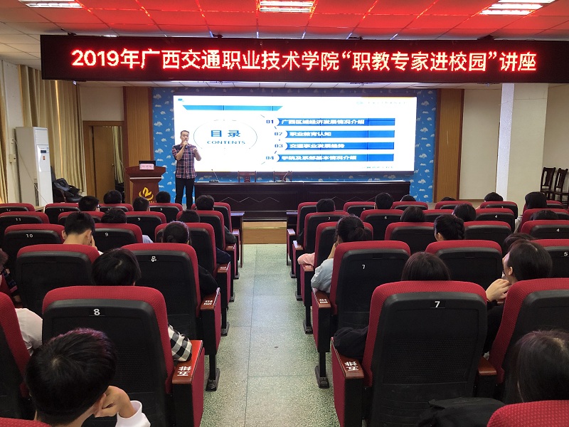 交通信息工程系党总支书记杨顺韬为横县职业教育中心100余名师生作了“职业教育与交通行业发展”的主题讲座。他从广西区域经济发展情况、职业教育认知、交通事业发展趋势等方面为横县职业教育中心师生解析了当前中高职职业教育发展的态势。