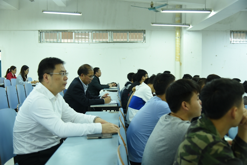 汇报会结束后,温书记、莫副书记陪同专家组走访了我院路桥教学工场。随后检查组专家召开了思政课教师座谈会和学生代表座谈会,并且随堂听取了我院思政课教师杨中陶、韦涛老师的课,进一步了解我院思政课开课和课堂教学情况。
