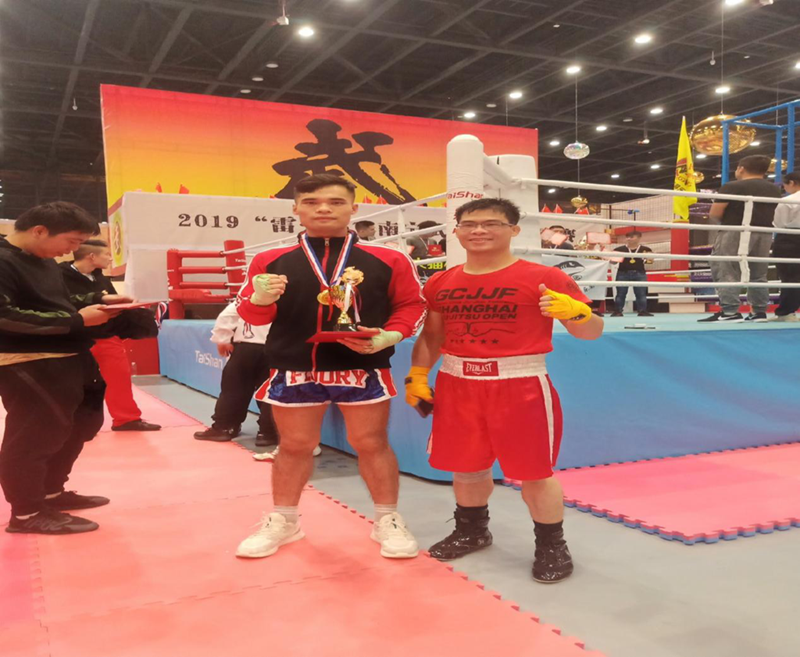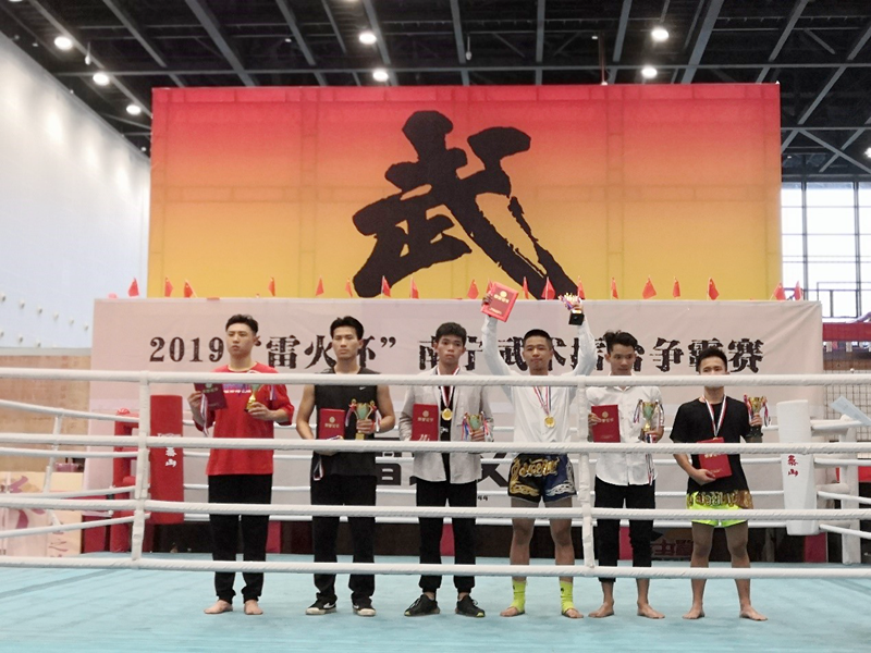 (学工处、团委 讯 张 佺、樊毓美、陈国川/文、图) 为更好地推动南宁市武术搏击运动,南宁市体育总会、南宁市社会体育发展中心携手南宁市威振武术俱乐部举办了“雷火杯”南宁武术擂台争霸赛。我院航海2018-1班韦永存荣获无头衔擂台争霸赛65公斤级踢拳冠军;航海2019-1班李必港荣获青少年格斗大赛65公斤级踢拳冠军。