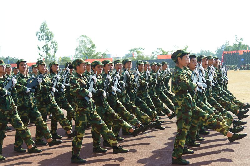 大会在庄严的国歌声中拉开了序幕。首先进行阅兵式,伴随着雄壮的检阅进行曲,程轮院长检阅了受训学生。在分列式环节中,同学们踏着矫健的步伐,意气风发地通过主席台,接受领导和师生的检阅。紧随分列式之后的是队列会操表演,由各个营(系)推选出最优秀的方阵参演。