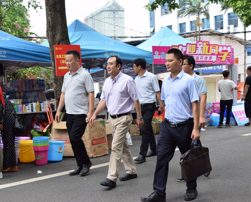 学院总会计师谭雄到现场查看接待新生情况