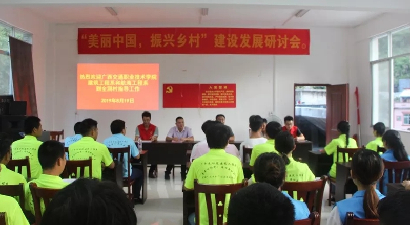 8月19日至21日,学院建筑工程系与航海工程系联合赴河池市东兰县三弄瑶族乡全洞村,举行2019年"青春心向党,建功新时代”大学生暑期“三下乡”实践活动。其中包括了“美丽中国,振兴乡村”建设发展研讨会、走访慰问活动、文艺汇演、安全知识教育、测量规划、水质监测、“三清三拆”美丽乡村大清洁、参观韦拔群纪念馆等活动。