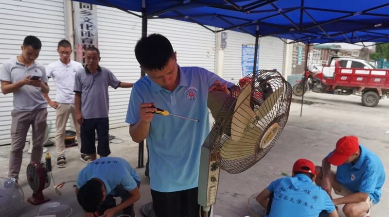 8月22日早上,学院汽车工程系拉开了“青春扶贫”社会实践服务队“三下乡”活动的序幕,组织师生到东兰县大同乡进行社会实践活动,清扫信河村村支部委员会扶贫基地、听村里老党员上党课、开展家电维修工作等。社会实践服务队充分发挥机电专业学生特长,为村民开展家电义务维修活动,在师生的共同努力下,村民带来的坏损电器如电磁炉、洗衣机、电风扇等又恢复了运转。师生们提供了实实在在的帮助,得到了村民们的一致好评。活动不仅增强了同学们的服务意识、实践动手能力、对专业的认同感,也充分展现了汽车工程系学生良好的精神风貌,为交院驻村帮扶工作提供了一份力量。
