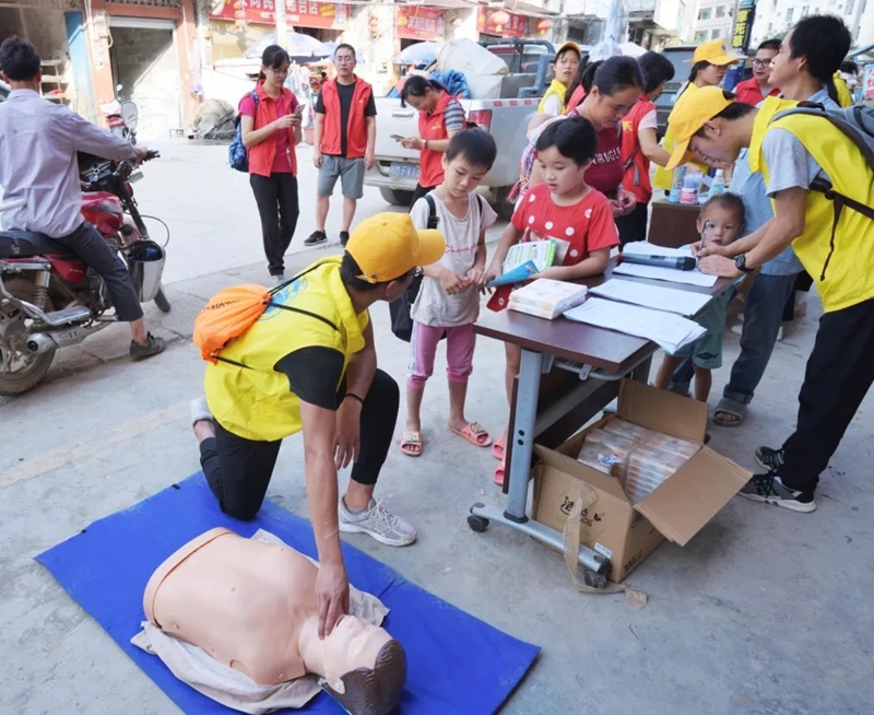 志愿者示范急救动作