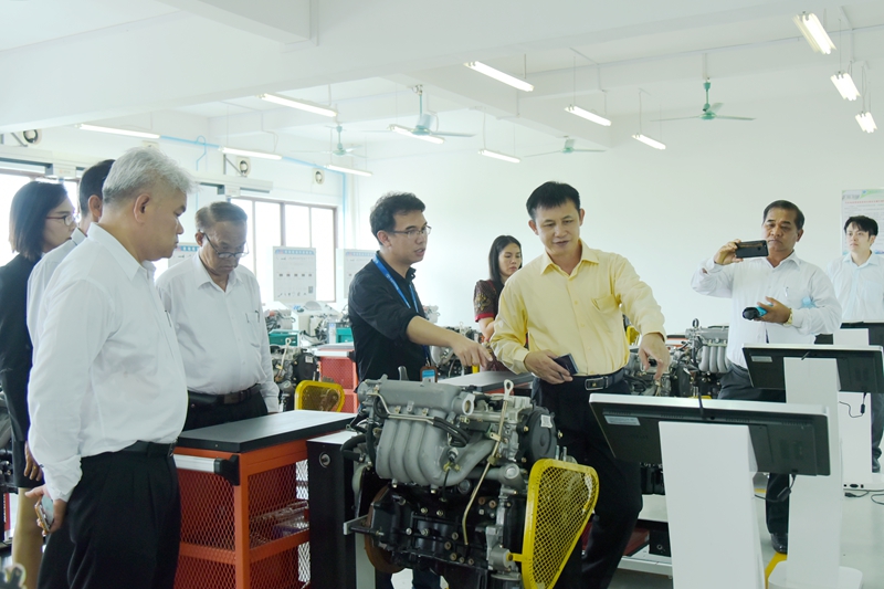 泰国职教参访团一行参观了物流实训室、轨道交通实训室,汽车楼实训室,路桥教学工场,航海实训室,信息系实训室,泰国外宾对学院实训基地的先进设施给予了高度评价,表示愿意选派学生来学院开展实训培训。
