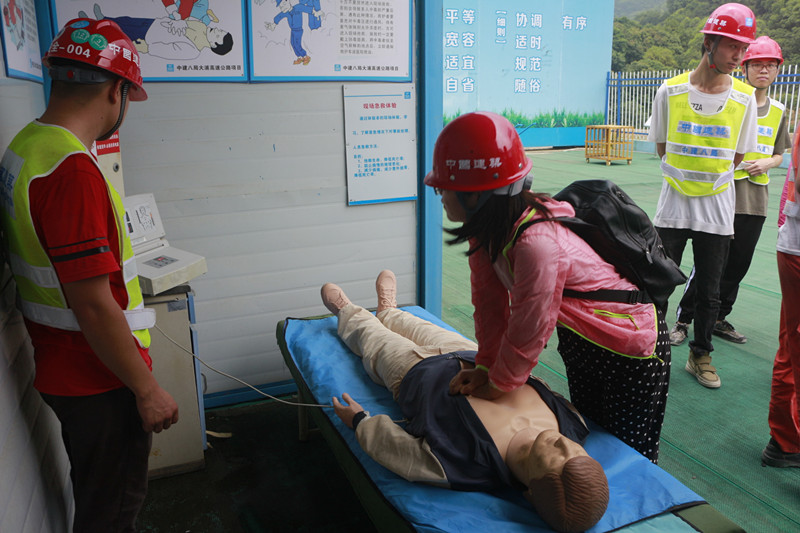 在安全体验活动上,韦红教副院长和系全体老师在周勇总经理的陪同下,认真细致的倾听项目总工对安全体验馆洞口坠落、墙体倾倒等25个易发生安全隐患项目的详细介绍和防范措施,并亲身体验了洞口坠落、墙体倾倒、应急急救等项目,让老师们提高了在交通工程施工过程中的自我保护意识。