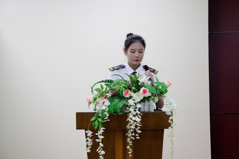 本次活动由航海工程系团总支书记周恒老师主持,周老师表示:“建国70载,国家在快速发展,身为祖国发展新生力量的青年一代,要努力奋进,学好本领,砥砺前行,我希望我系学子做到走下网络、走出宿舍、走进课堂、踏入操场”。接着全体师生一起观看建国70周年视频,见证祖国高速的发展历程,在场师生无不激动不已,齐唱《我和我的祖国》,为祖国喝彩。其中水运管理2018级的蒋小春同学发言,她讲到:“在世界全球化快速发展的前提下,身为新时代的青年,应该努力提升自我的综合能力,跟上时代的发展,跟上祖国的发展”。
