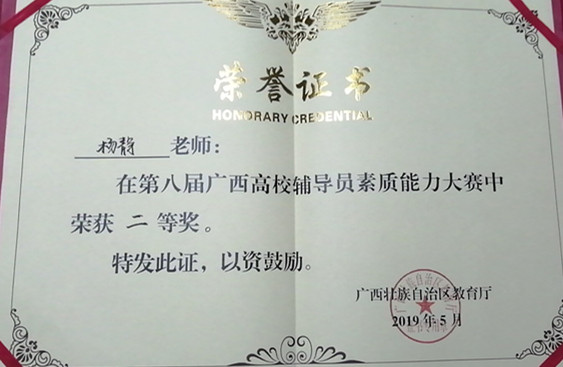 (路桥系讯 李振成/文 覃金梅/图)5月30日至31日,由自治区党委教育工委、教育厅主办,广西高校辅导员培训和研修基地承办的第八届广西高校辅导员素质能力大赛在广西大学举办,共有来自广西区内71所高校的124名高校辅导员参赛。经过激烈角逐,我院杨静老师获大赛决赛二等奖的好成绩。