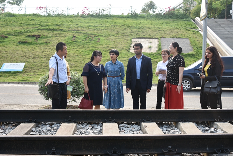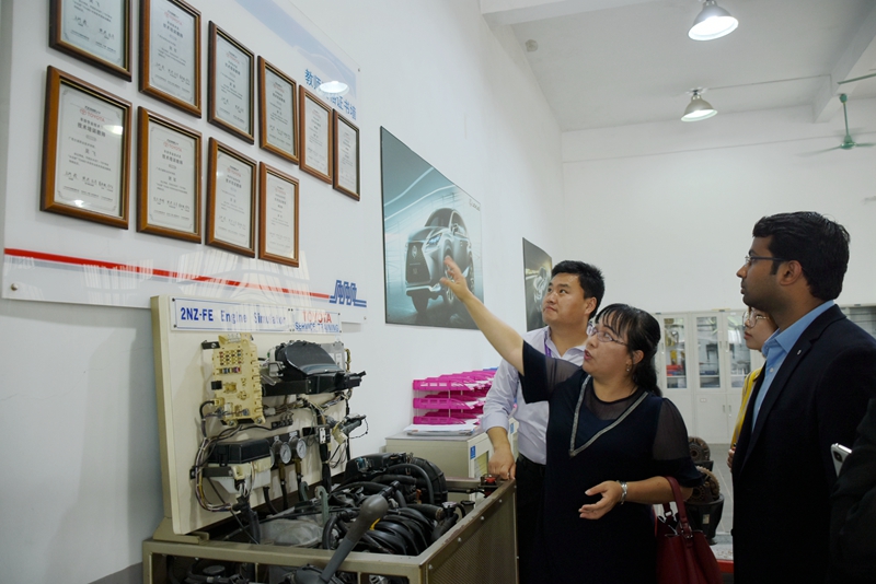 座谈会结束后,印度外宾一行3人实地参观了路桥教学工场、中德机电职业技能培训中心、城轨实训室、物流实训室等,对学院交通办学特色和办学实力有了初步了解。外宾对我院先进的实训基地及设备给予了高度评价。