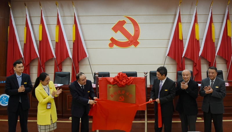 (党委工作部 讯 陆丽程/文 苏江/图) 3月27日,学院在昆仑校区第一学术报告厅举行“新时代讲习所”揭牌仪式。学院领导温宗胤、程轮、莫海燕、黄琼念、韦红教、谭雄为“新时代讲习所”揭牌。