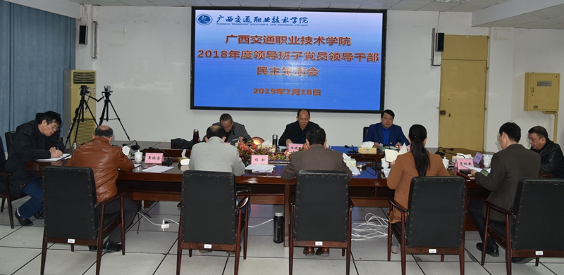 (党委工作部 讯 张丽梅/文 苏 江/图) 1月18日,学院在园湖校区图书馆四楼会议室召开2018年度领导班子党员领导干部民主生活会,会议由学院党委书记温宗胤主持。自治区交通运输厅党组成员、副厅长陆晓明,自治区交通运输厅直属机关党委专职副书记林奇茂,自治区交通运输厅科教处副处长张斯悦等领导全程参与指导。