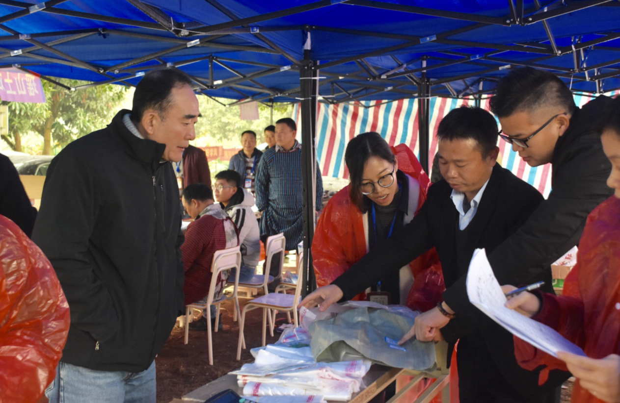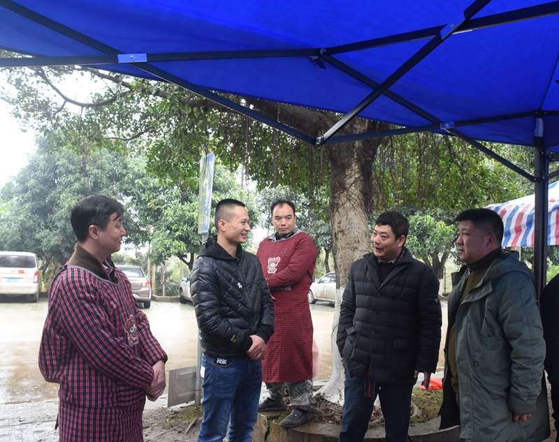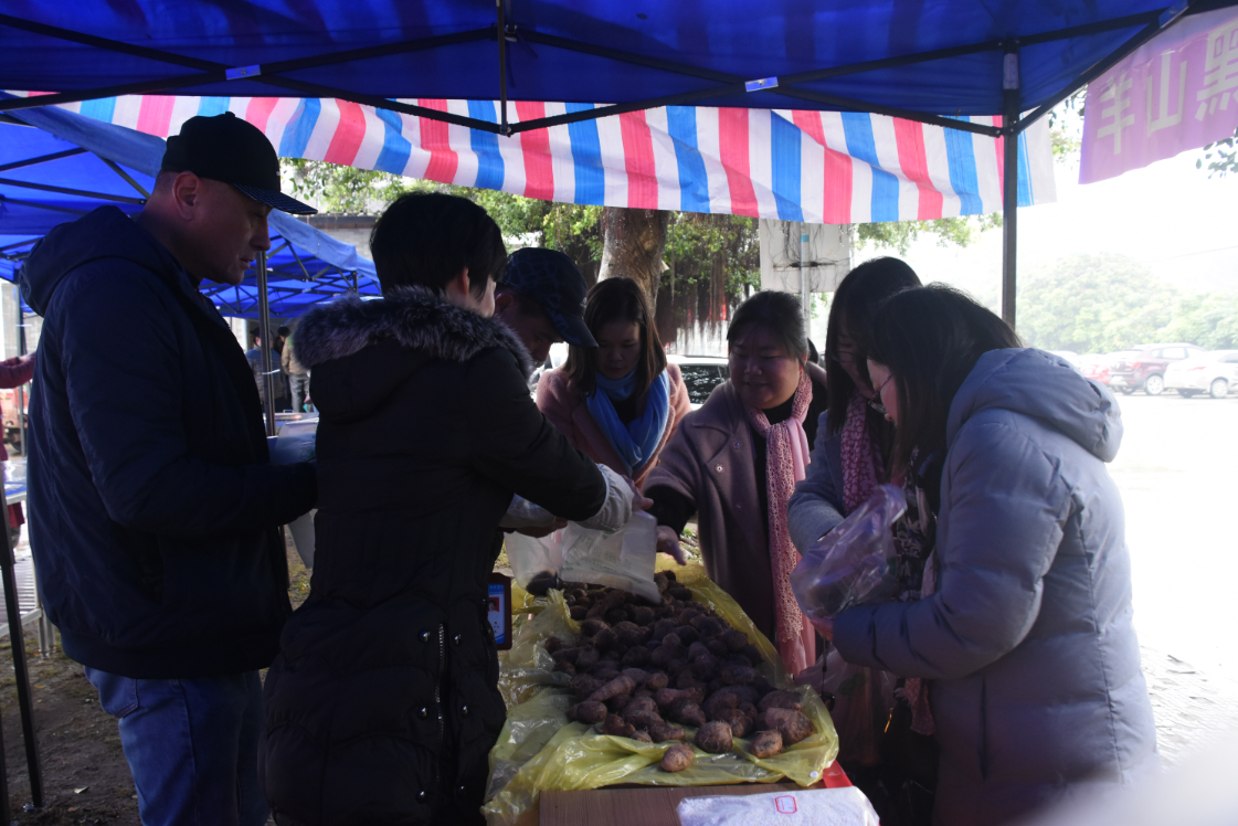 (后勤保卫处党支部 讯 黄春莉/文、图) 1月4日,后勤保卫处党支部联合深洞村党支部开展以“校地联建帮扶,助力精准扶贫”为主题的深洞村特色农产品展销主题党日活动。学院党委书记温宗胤、院长程轮、副院长黄琼念到场指导工作。