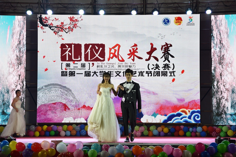 (学生工作处 团委 讯 张 佺、盘慧凤/文 苏秋香、潘加卓、吴肖荧/图) 12月27日,学院第二届“树礼仪之风·展交院魅力”礼仪风采大赛决赛暨第一届大学生文化艺术节闭幕式活动在昆仑校区中区舞台举行。学院副院长黄琼念,招生就业处、学工处、团委及各系部相关负责人观看了比赛。全院1400余名师生到场观看了本次大赛。