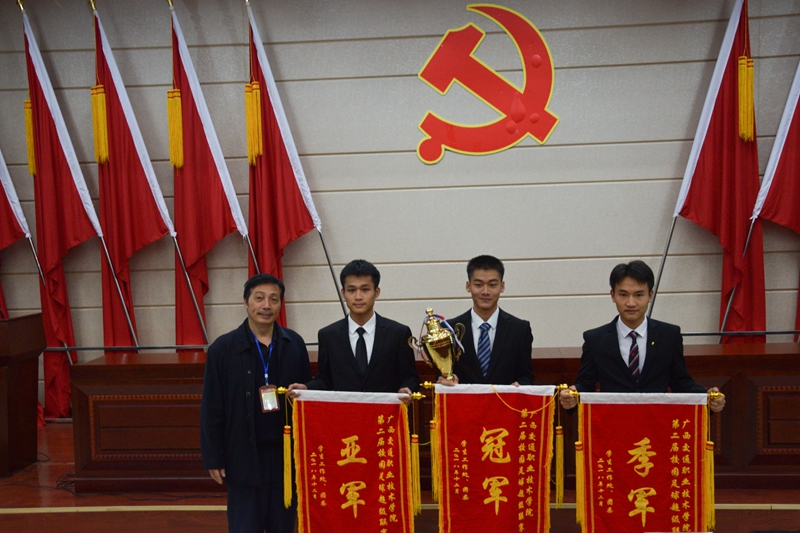 颁奖典礼上,学生工作处负责人为获得冠亚季军的三支队伍颁奖。到场领导嘉宾为获得优秀组织奖、最佳新锐奖、最佳裁判员奖、最佳门将奖、最佳射手奖、最有价值球员奖、最佳阵容奖等8个奖项的组织和个人颁奖。