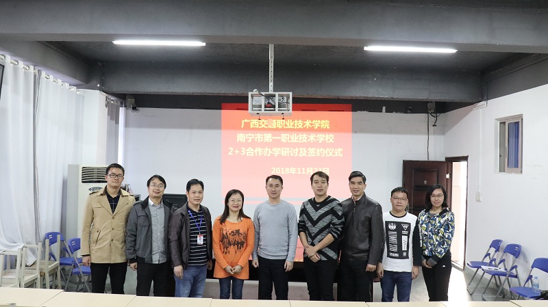 (交通信息工程系 讯 孙 坚/文、图) 为了进一步推动中高职信息技术类专业协调发展,实现中职教育与高职教育的有机衔接。11月23日,我院与南宁市第一职业技术学校举行了“2+3”合作办学研讨会暨签约仪式。我院招生就业处、交通信息工程系负责人及南宁市第一职业技术学校相关负责人参加了研讨会。