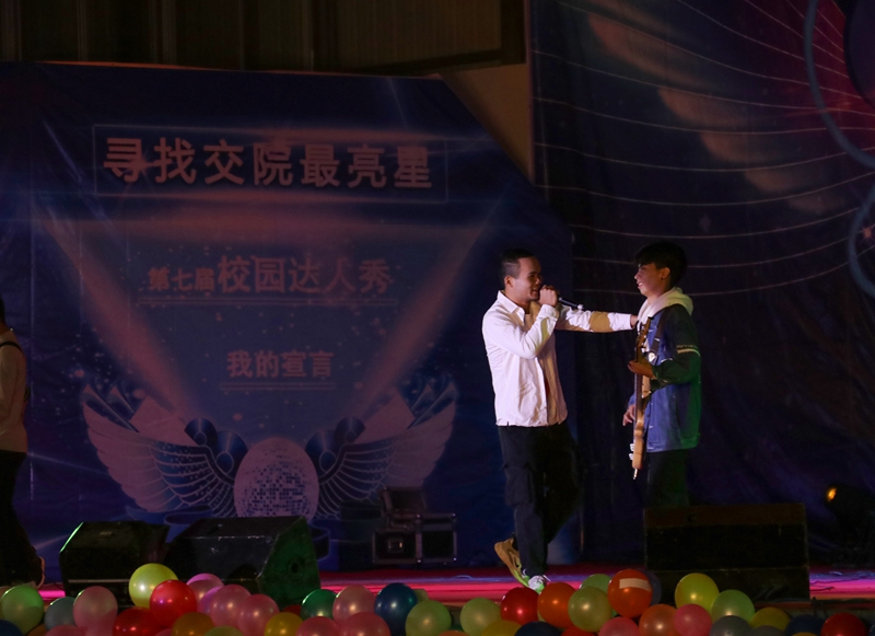 (学生工作处 团委 讯 黄容容、苏秋香、吴肖荧/图) 12月7日,我院第七届“校园达人秀”总决赛在昆仑校区中区舞台举行。此次比赛吸引了近千名师生前来观看,现场十分火爆。