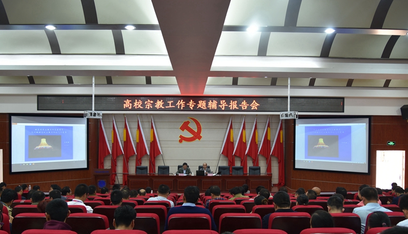 (党委工作部 讯 黄福秀/文 苏 江/图) 11月27日下午,学院在昆仑校区第一学术报告厅举行高校宗教工作专题辅导报告会。广西社会主义学院原副厅级巡视员、自治区党委统战部原民宗处处长石有健进行专题辅导。