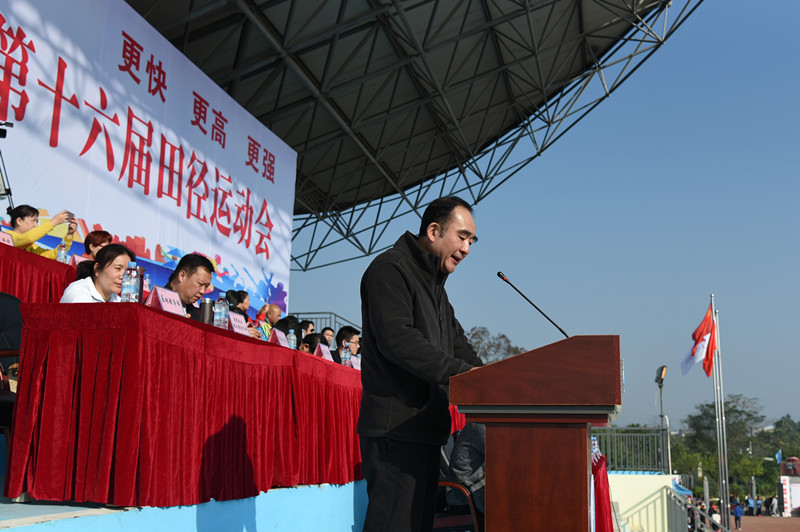 (党委工作部 讯)11月23日上午,学院在昆仑校区综合运动场隆重举行第十六届田径运动会开幕式。学院党委书记温宗胤,院长程轮,党委副书记、纪委书记莫海燕,副院长黄琼念、陈海峰和全体师生员工参加了开幕式。开幕式由副院长陈海峰主持。
