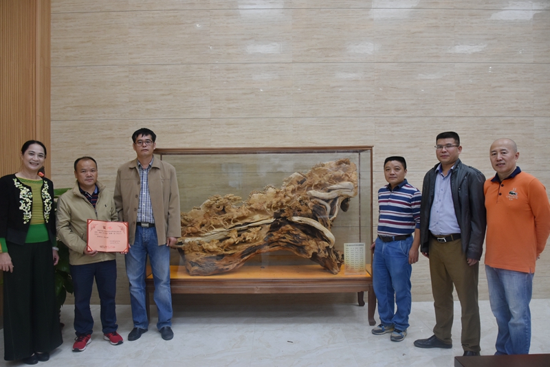 (党委工作部 讯) 10月19日校庆前夕,我院路桥901班校友唐桂平、龙斌代表全班45名同学向学院捐赠一座《万马奔腾》根雕作品,表达对母校60周岁生日的深情祝福。根雕作品以崖柏为原材料,雕刻出一群栩栩如生的奔马,意喻学院事业如万马奔腾、蒸蒸日上。