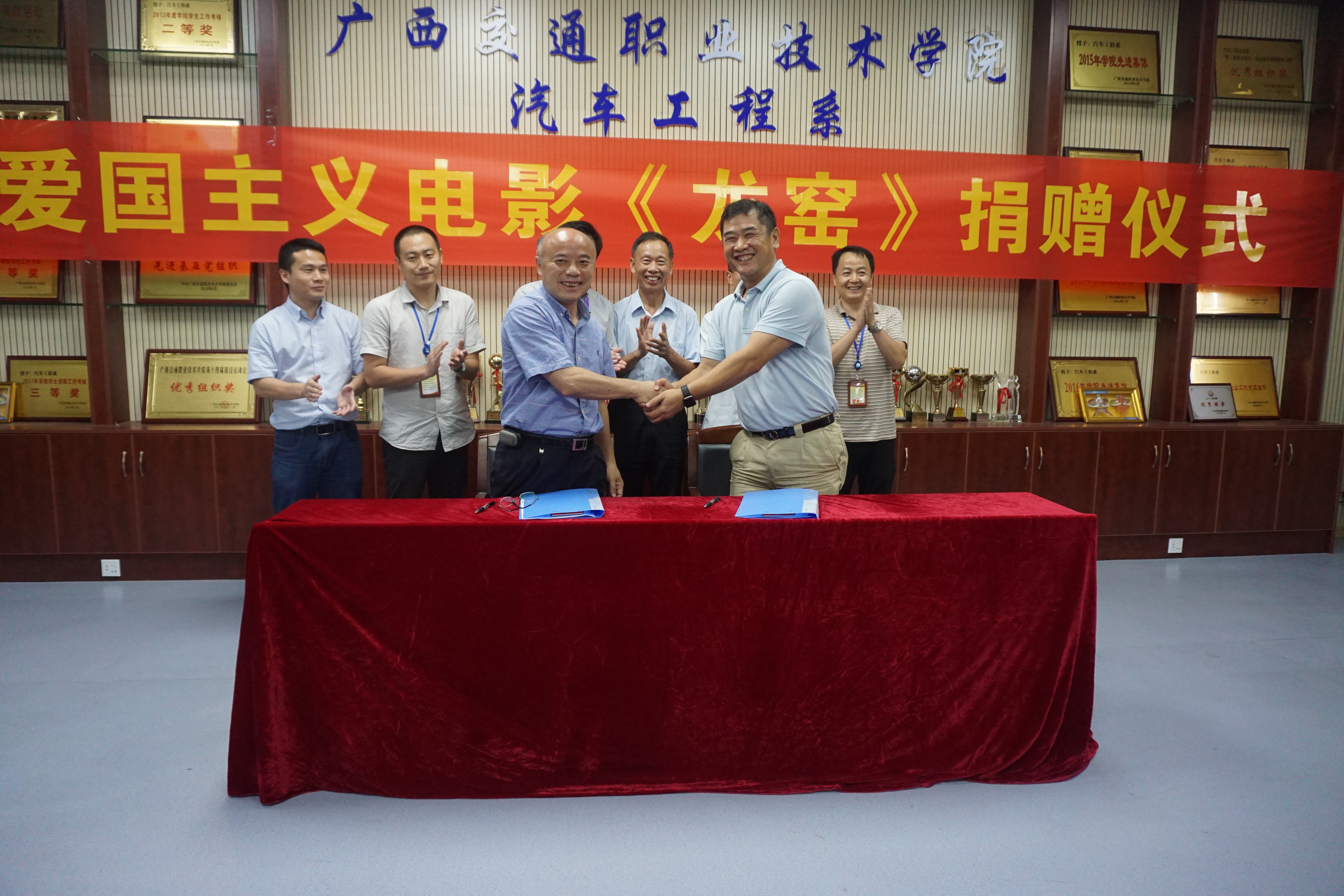 (汽车工程系 讯 吴丹/文、图) 近日,广西业盛投资集团有限公司向我院捐赠了非遗电影影片《龙窑》。黄琼念副院长参加了捐赠仪式。