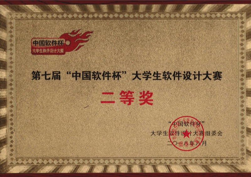 第七届“中国软件杯”大学生软件设计大赛二等奖牌匾