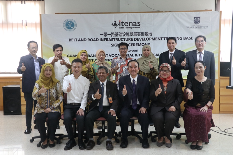 学院与印尼国立理工学院、中国国际教育研究院签署了三方合作协议,共同建立“一带一路”创新创业孵化基地,并在该基地下设“一带一路”基础设施发展实训室。2018年9月,合作三方在印尼举行基地和实训室挂牌仪式。学院还依托该基地和实训室,向教育厅申报了课题《“一带一路”下交通土建优质专业技术输出实践探究》并获厅级立项。