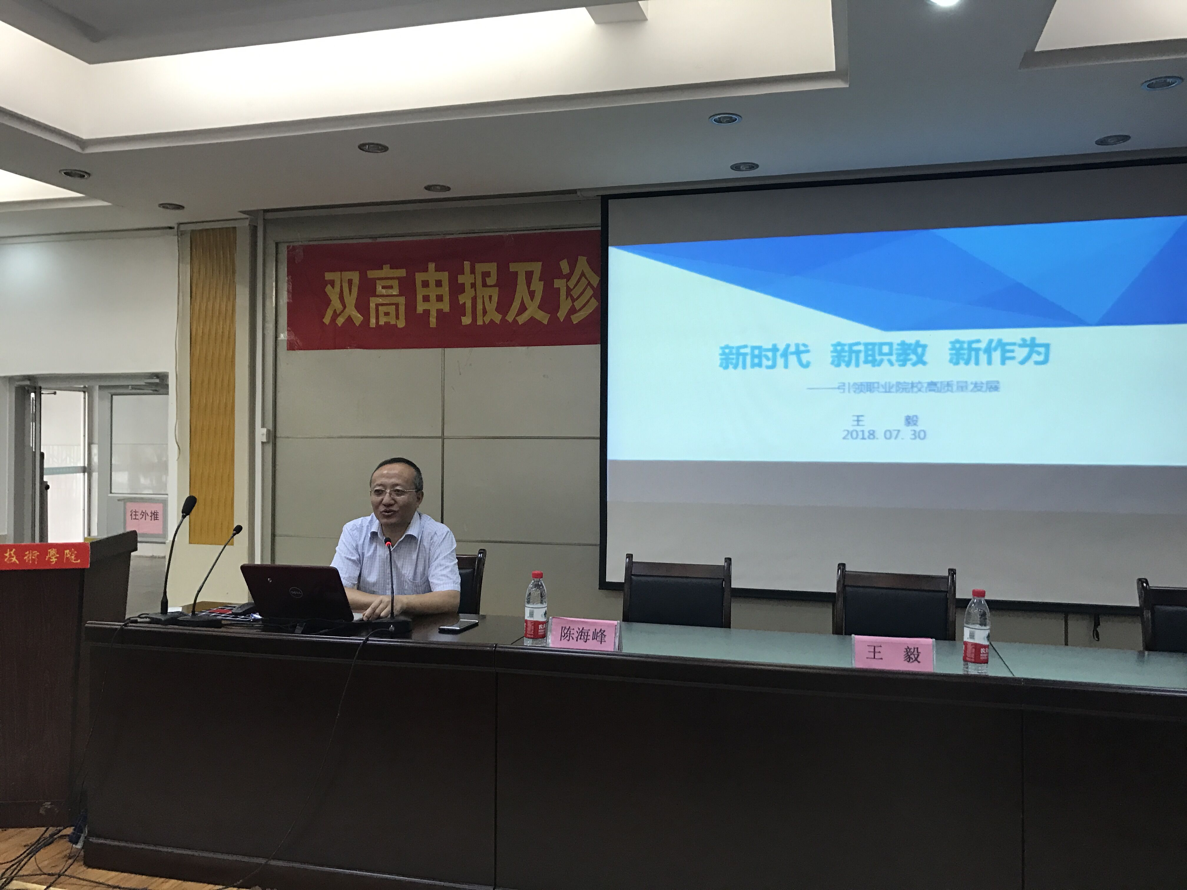 新职教 新作为——引领职业院校高质量发展”的双高申报及诊改推进讲座。陈海峰副院长出席并主持讲座。
