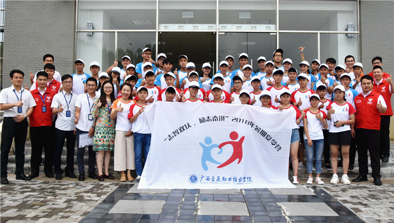 东兰学子参观学院昆仑校区路桥教学工场,聆听老师的介绍