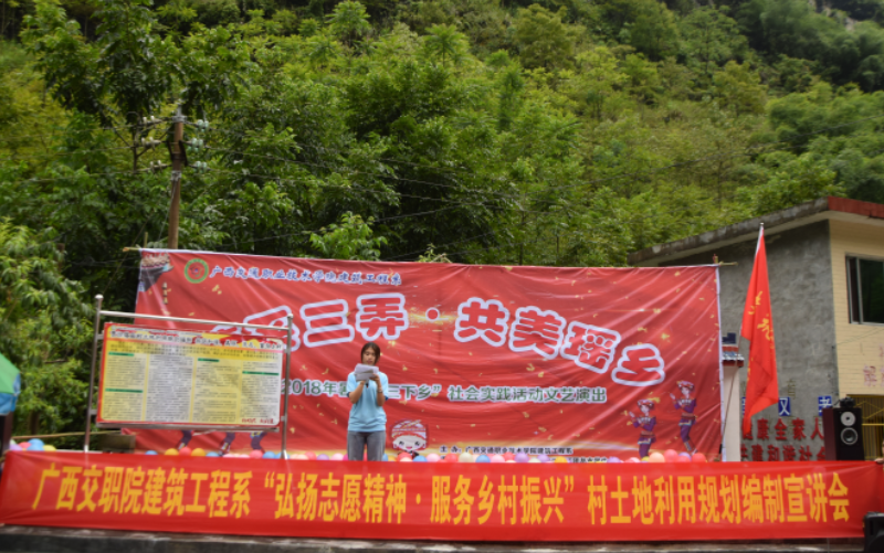 (建筑工程系 讯 谭婕婕 卢东 李博勤/文 ) 7月22日至26日,建筑工程系组织50余名师生前往河池市东兰县三弄瑶族乡全洞村开展“青春大学习,奋进新时代”暑期三下乡社会实践活动暨村土地利用规划编制志愿服务专项活动。建筑工程系高度重视2018年大学生暑期“三下乡”社会实践活动,结合系部职能、专业文化特色,精心筹划组建了建筑工程系美丽广西实践团和“弘扬志愿精神·服务乡村振兴”村土地利用规划服务团(两者以下统称:服务团)开展专项活动。