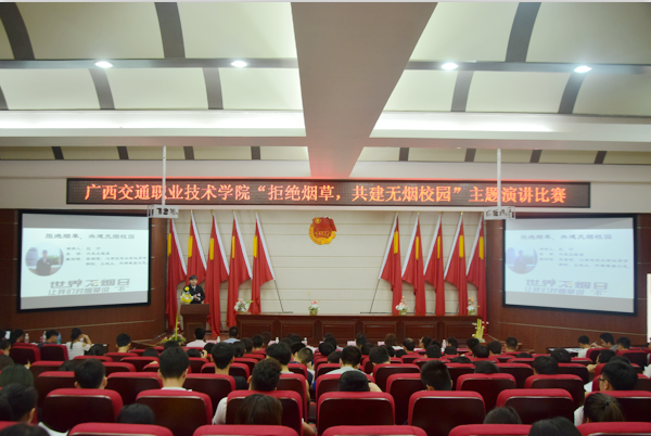 铸就美好未来》为题,以家庭教育及少年梦想作为切入点,强调家庭教育和学校引导对戒烟的重要性,表达了远离烟草,拥有健康体魄才能铸就美好未来的观点。管理工程系参赛选手梁程程则以《星星之火,可以燎原》为题,结合自身亲身经历痛斥吸食二手烟带来的危害,呼吁青年学生抵制烟草,还大家一个绿色环境。经过激烈比拼,建筑工程系钟钦荣获一等奖;管理工程系梁程程、汽车工程罗世洋荣获二等奖;路桥工程系甘瑜等三名选手荣获三等奖;信息工程系李林荣等五名选手荣获优秀奖。
