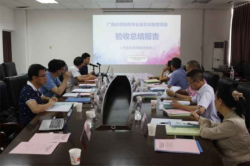 (路桥工程系 讯 杨静/文、图) 5月28日,广西教育厅委派2014-2015年度广西示范专业及实训基地建设项目验收专家组莅临我院,分别对道路桥梁工程技术和汽车检测与维修技术两个示范专业及实训基地建设项目进行验收鉴定。学院副院长陈海峰教授、路桥工程系领导班子、汽车工程系领导班子及项目组相关专业教师参加了验收会。