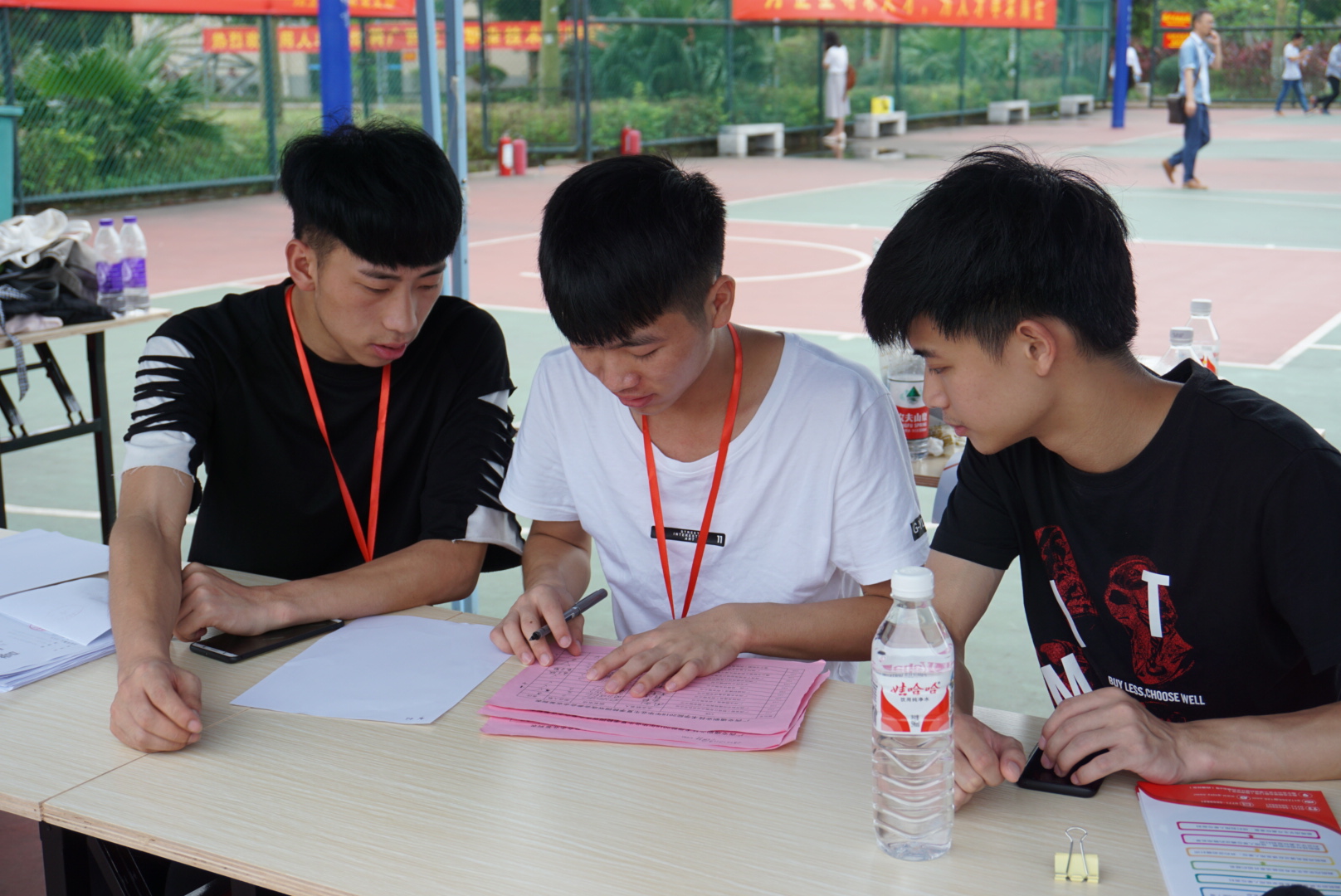 学生志愿者在现场统计参会用人单位数据