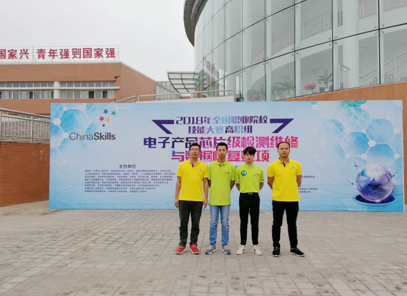 本赛项以电子信息产业发展的人才需求为依托,比赛内容要求选手在规定时间内完成板卡故障的检测与维修,以及对各种存储介质上的受损数据进行修复,检验选手在模拟真实的工作场景下检测维修及数据恢复的技能和综合职业素养。比赛现场,我院参赛队员分工合作,沉着应战,凭借扎实的基础知识、精湛的技术技艺、精诚的团队精神和良好的心理素质顺利完成比赛任务,喜获2018年全国职业院校技能大赛(高职组)"电子产品芯片级检测维修与数据恢复"赛项三等奖。