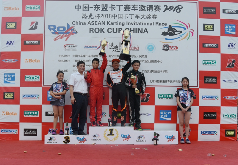 中国-东盟卡丁赛车邀请赛·洛克中国卡丁车大奖赛南宁站吸引了东盟各国车手以及意大利、瑞士、阿联酋等冠军车手报名参赛,共分为大师组、成年组、青少年组和儿童组4个组别展开激烈角逐。5月26日至27日,各组别车手进行了预赛和决赛。其中,27日下午车手们在雨中激情竞速,再现了速度与激情的较量。经过激烈比拼,各组别最终成绩落定,现场举行了隆重的颁奖仪式。
