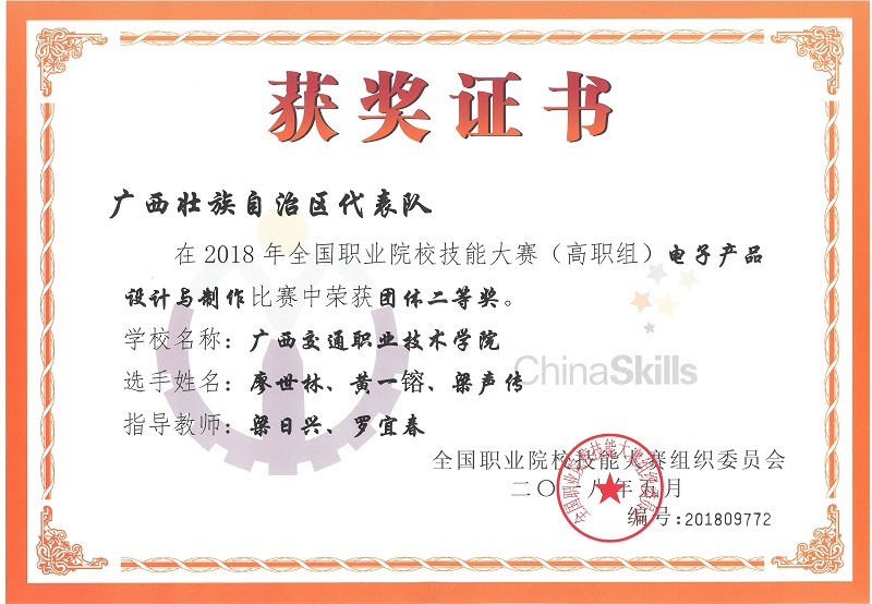 经过激烈的角逐,我院参赛选手以扎实的基本功、稳定的现场发挥夺得2018年全国职业院校技能大赛(高职组)电子产品设计及制作赛项团体二等奖的好成绩。