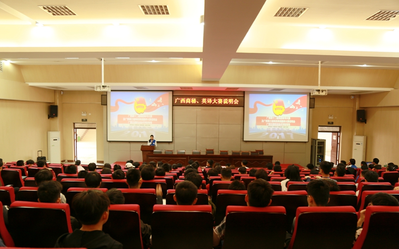 (学生工作处 团委 讯 张佺、盘慧凤/文 欧文婷/图) 3月28日,我院团委在四塘校区第二学术报告厅开展了第三届广西商务英语翻译大赛和第十二届商务秘书大赛说明会。我院200余名师生参加了说明会。