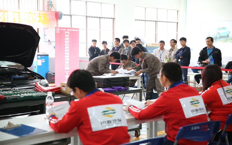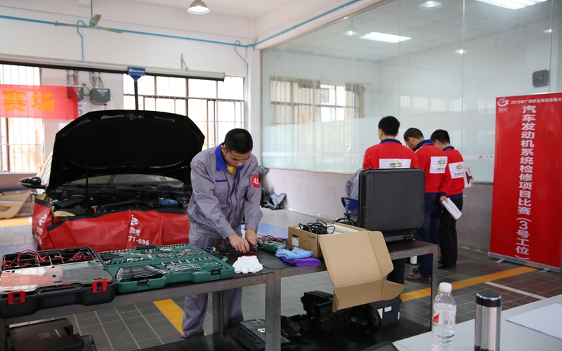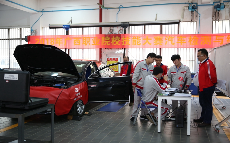 3月26-27日,2018年广西职业院校技能大赛汽车检测与维修赛项(高职组)在学院四塘校区拉开帷幕。比赛中,各参赛队伍在规定时间内通过“汽车发动机系统检修”、“汽车电气系统检修”两个项目的竞赛,利用现场提供的技术资料和器材,完成相关故障现象的诊断、分析、排除操作,并同时完成分析报告的书写,充分展示了各参赛队伍的组织管理、团队协作、现场问题分析与处理、工作效率、安全及文明生产等职业素养和良好的精神风貌。