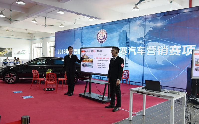 3月26-27日,2018年广西职业院校技能大赛汽车营销赛项(高职组)在学院四塘校区火热进行。