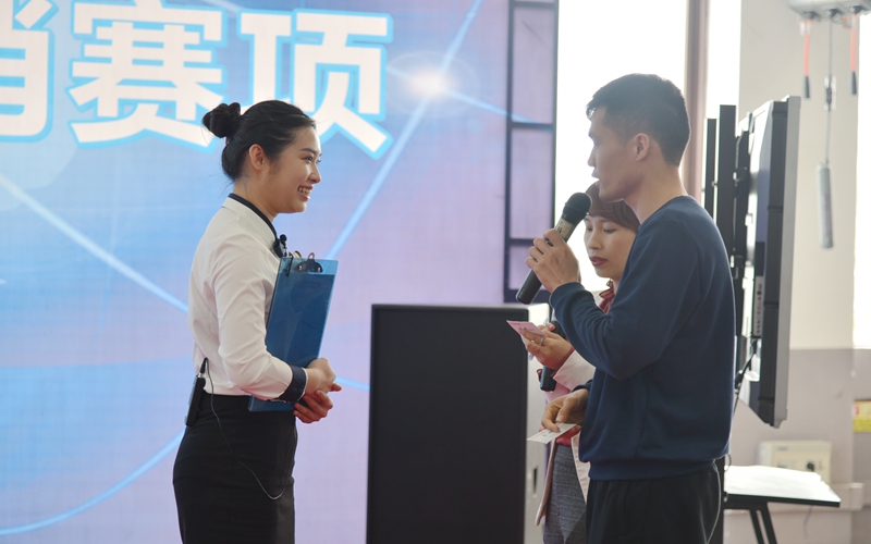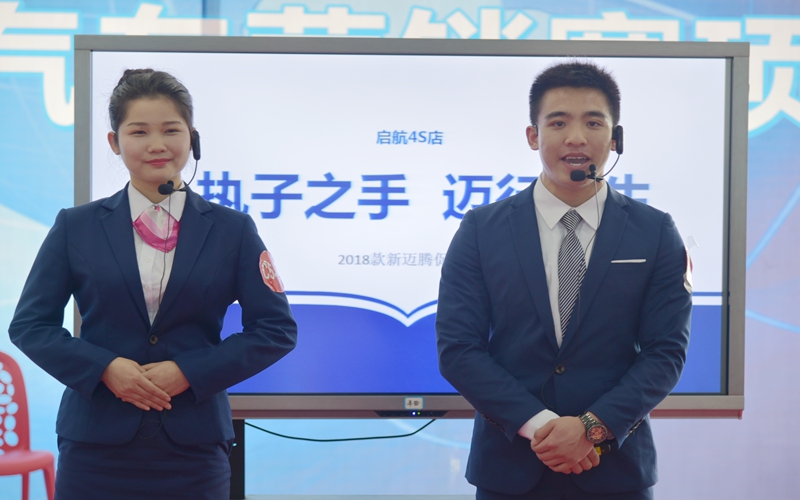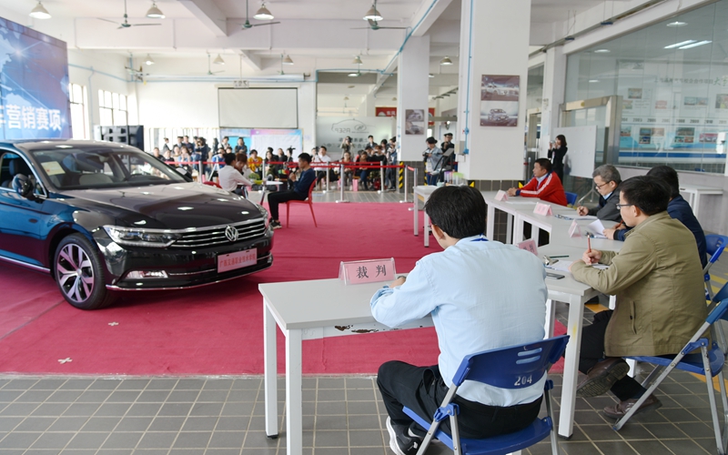 “汽车营销比赛不仅考验参赛选手的营销能力,更是对其专业知识、危机处理能力、商务礼仪等方面的综合检验。”汽车营销赛项包括汽车营销基本技能、汽车营销策划技能、汽车销售综合技能等内容,旨在检验学生对专业知识与专业核心技能的掌握水平。各参赛队在规定时间内,沉着应战,齐心协力完成现场机试操作、营销策划方案陈述、汽车销售全过程演练和展示等项目。特别是在汽车销售综合技能展示环节,参赛选手要经过“客户”的种种刁难和折磨,完成接待、营销、解释异议等环节的演练和展示,展现了良好的职业技能与职业素养,赢得了评委们的一致好评。