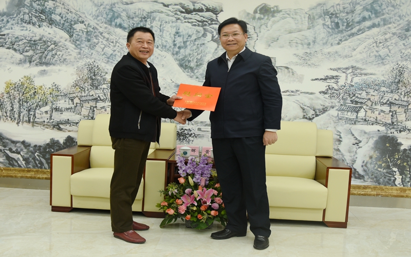 (党委工作部 讯 张丽梅/文 梁友佳/图) 1月22日下午,自治区人民政府副主席黄日波带着自治区党委、政府的关怀和祝福,亲切看望并慰问了我院“国家级教学名师”、“全国交通职业教育专业带头人”、“广西壮族自治区优秀专家”彭朝晖教授。学院党委书记温宗胤、院长程轮参加了慰问座谈会。
