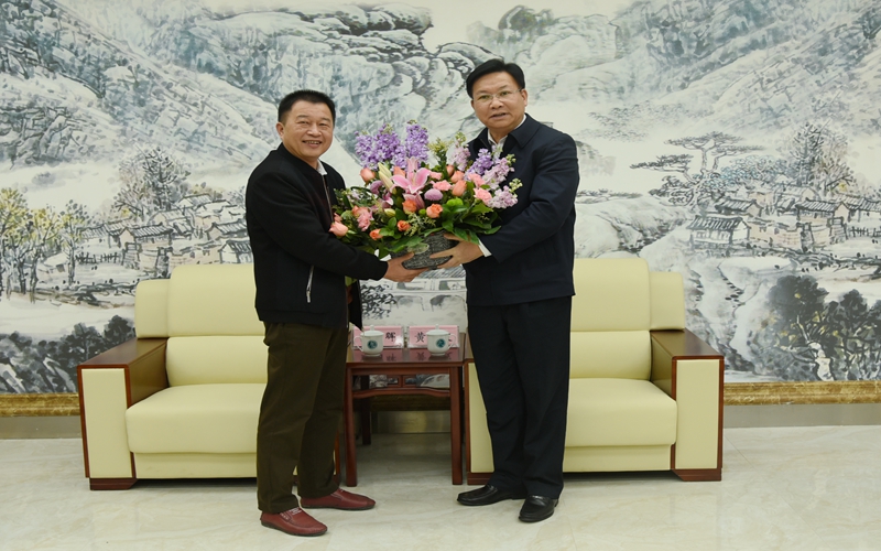 彭朝晖教授对党委、政府和上级部门的关怀表示感谢,向黄日波副主席汇报了基本工作情况。学院党委书记温宗胤详细介绍了学院名师工作室的作用和职能。