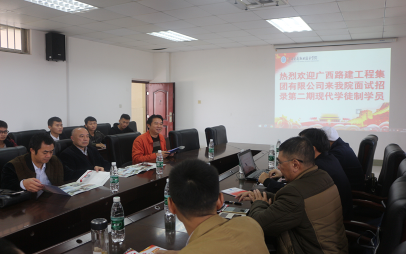 李振成、杨静/文 杨静/图)近日,广西路建工程集团有限公司来我院面试招录第二期现代学徒制学员。学院副院长黄琼念参加此次活动。